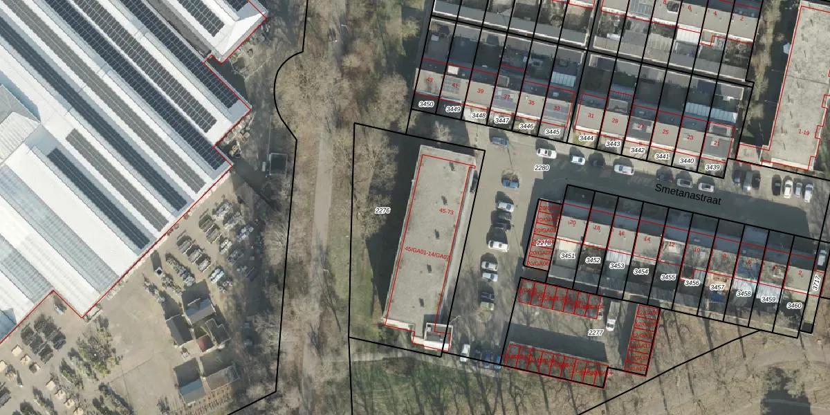 Het perceel waarop Smetanastraat 61 staat heeft een oppervlakte van 1410 m². Dit is een zeer groot perceel. De perceeloppervlakte wordt geregistreerd door het Kadaster. Gedetailleerde informatie over de maten van dit perceel kunt u vinden in het rapport Kadastrale kaart met maatvoering van Smetanastraat 61.