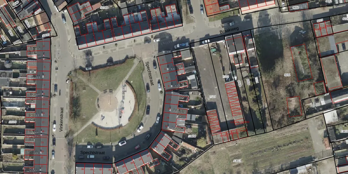 Het perceel waarop Spechtstraat 8 staat heeft een oppervlakte van 2570 m². Dit is een zeer groot perceel. De perceeloppervlakte wordt geregistreerd door het Kadaster. Gedetailleerde informatie over de maten van dit perceel kunt u vinden in het rapport Kadastrale kaart met maatvoering van Spechtstraat 8.