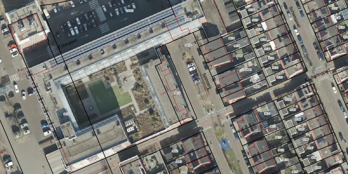 Het perceel waarop Spinnerij 9 staat heeft een oppervlakte van 426 m². Dit is een groot perceel. De perceeloppervlakte wordt geregistreerd door het Kadaster. Gedetailleerde informatie over de maten van dit perceel kunt u vinden in het rapport Kadastrale kaart met maatvoering van Spinnerij 9.