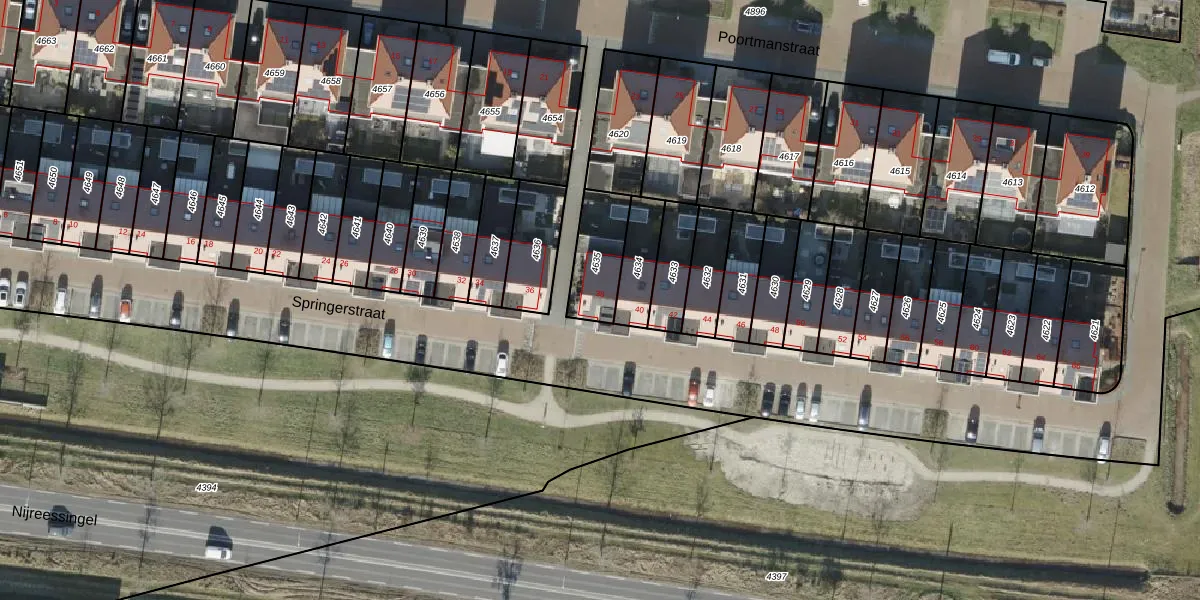 Het perceel waarop Springerstraat 38 staat heeft een oppervlakte van 171 m². Dit is een middelgroot perceel. De perceeloppervlakte wordt geregistreerd door het Kadaster. Gedetailleerde informatie over de maten van dit perceel kunt u vinden in het rapport Kadastrale kaart met maatvoering van Springerstraat 38.