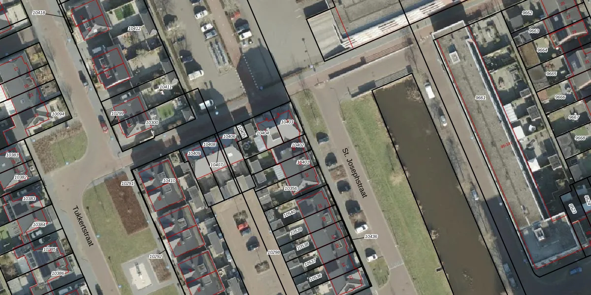 St. Josephstraat 28 is gelegen op kadastraal perceel AML01B10402. Deze kadastrale aanduiding is uniek en wordt gebruikt door het Kadaster om eigendomsrechten en andere zakelijke rechten vast te leggen. Het perceel maakt onderdeel uit van de kadastrale gemeente Ambt-Almelo.