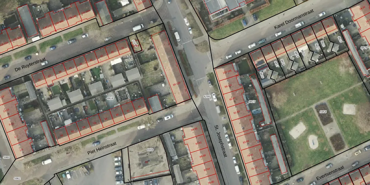 Het perceel waarop St. Josephstraat 98 staat heeft een oppervlakte van 4220 m². Dit is een zeer groot perceel. De perceeloppervlakte wordt geregistreerd door het Kadaster. Gedetailleerde informatie over de maten van dit perceel kunt u vinden in het rapport Kadastrale kaart met maatvoering van St. Josephstraat 98.