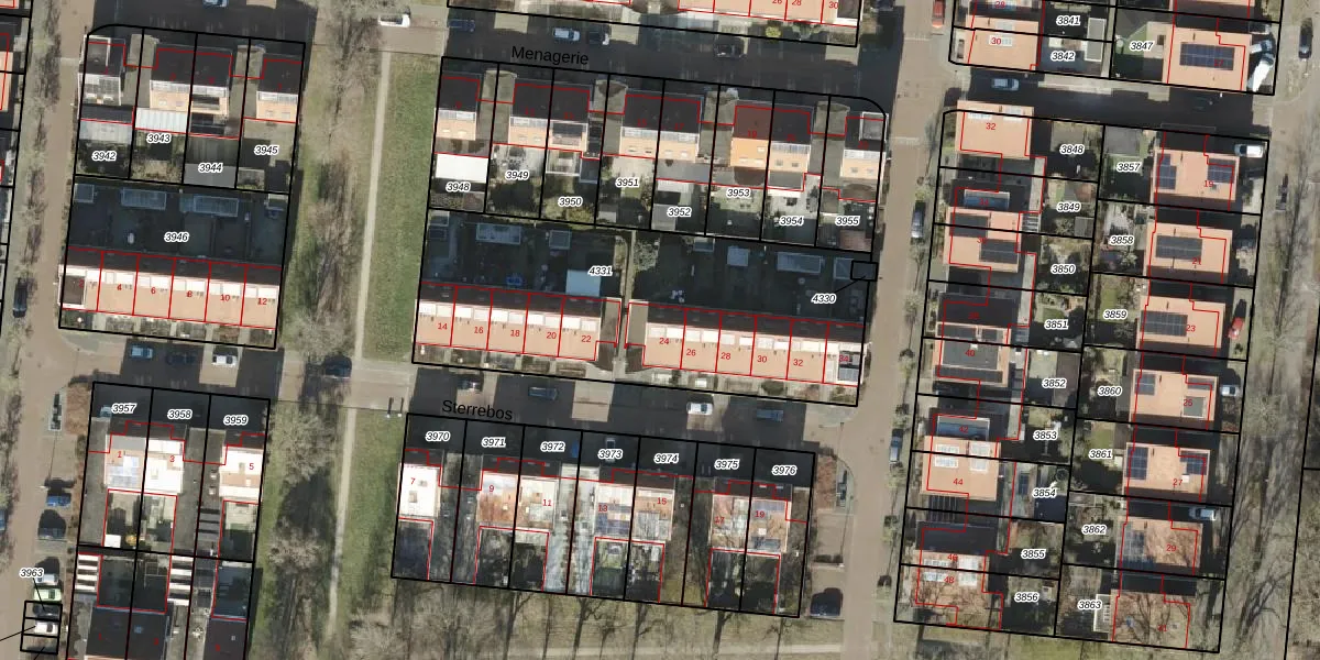 Het perceel waarop Sterrebos 24 staat heeft een oppervlakte van 1577 m². Dit is een zeer groot perceel. De perceeloppervlakte wordt geregistreerd door het Kadaster. Gedetailleerde informatie over de maten van dit perceel kunt u vinden in het rapport Kadastrale kaart met maatvoering van Sterrebos 24.