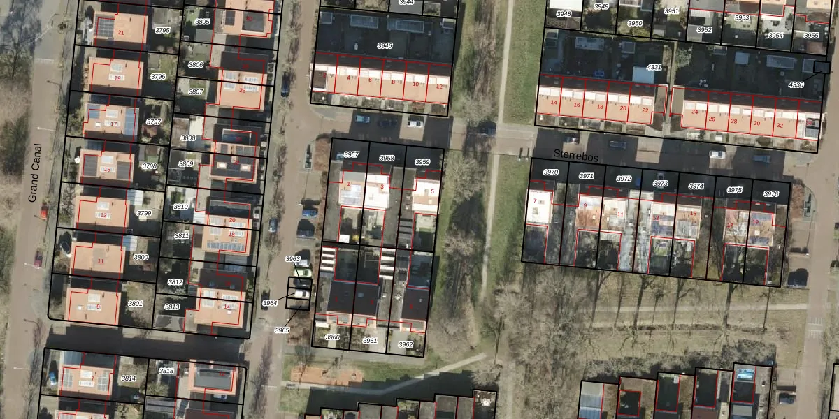 Sterrebos 5 is gelegen op kadastraal perceel AML01G3959. Deze kadastrale aanduiding is uniek en wordt gebruikt door het Kadaster om eigendomsrechten en andere zakelijke rechten vast te leggen. Het perceel maakt onderdeel uit van de kadastrale gemeente Ambt-Almelo.