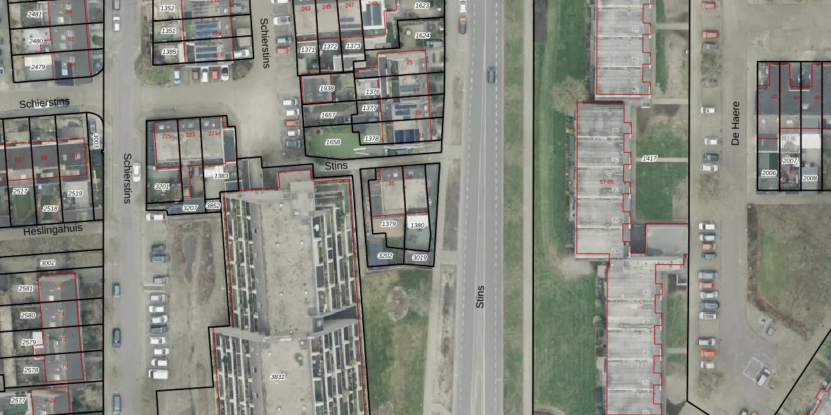 Het perceel waarop Stins 33 staat heeft een oppervlakte van 119 m². Dit is een middelgroot perceel. De perceeloppervlakte wordt geregistreerd door het Kadaster. Gedetailleerde informatie over de maten van dit perceel kunt u vinden in het rapport Kadastrale kaart met maatvoering van Stins 33.