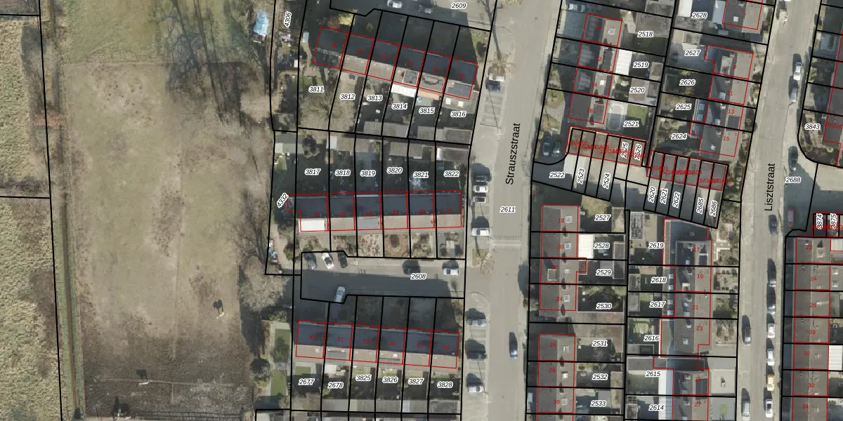 Het perceel waarop Strauszstraat 39 staat heeft een oppervlakte van 177 m². Dit is een middelgroot perceel. De perceeloppervlakte wordt geregistreerd door het Kadaster. Gedetailleerde informatie over de maten van dit perceel kunt u vinden in het rapport Kadastrale kaart met maatvoering van Strauszstraat 39.