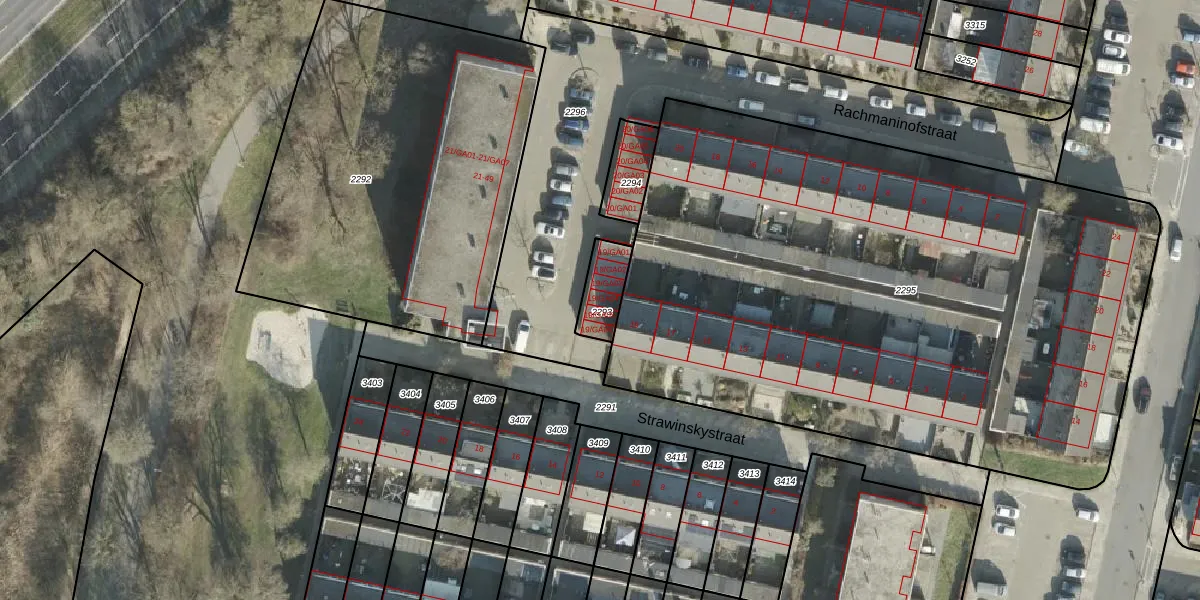 Strawinskystraat 19-GA04 is gelegen op kadastraal perceel AML01I2293. Deze kadastrale aanduiding is uniek en wordt gebruikt door het Kadaster om eigendomsrechten en andere zakelijke rechten vast te leggen. Het perceel maakt onderdeel uit van de kadastrale gemeente Ambt-Almelo.