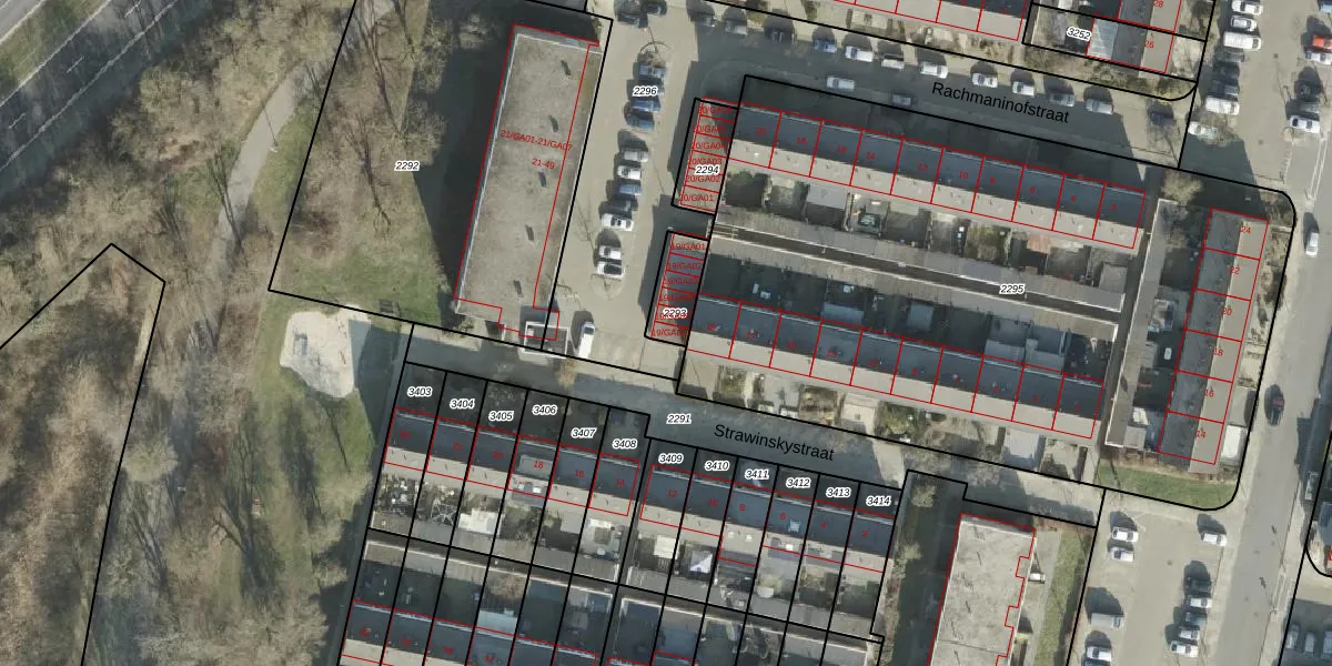 Strawinskystraat 19-GA06 is gelegen op kadastraal perceel AML01I2293. Deze kadastrale aanduiding is uniek en wordt gebruikt door het Kadaster om eigendomsrechten en andere zakelijke rechten vast te leggen. Het perceel maakt onderdeel uit van de kadastrale gemeente Ambt-Almelo.