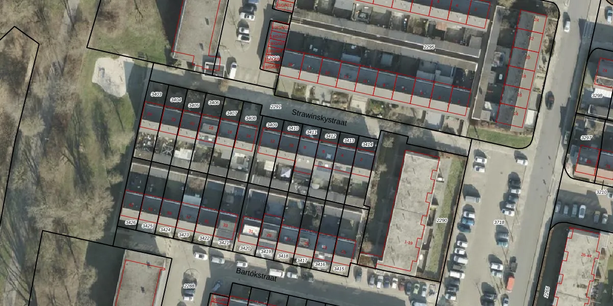 Gebruik de zoekbalk of klik op een perceel voor informatie over de adressen binnen dit perceel.