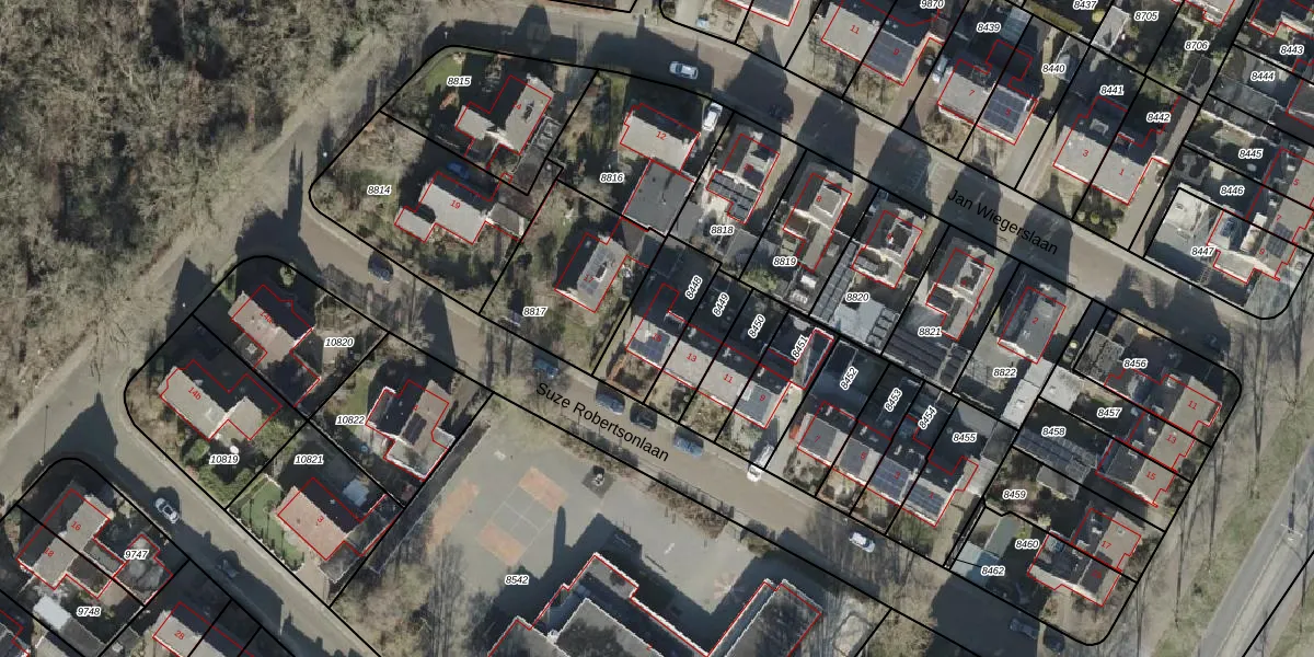 Suze Robertsonlaan 15 is gelegen op kadastraal perceel AML01H8448. Deze kadastrale aanduiding is uniek en wordt gebruikt door het Kadaster om eigendomsrechten en andere zakelijke rechten vast te leggen. Het perceel maakt onderdeel uit van de kadastrale gemeente Ambt-Almelo.