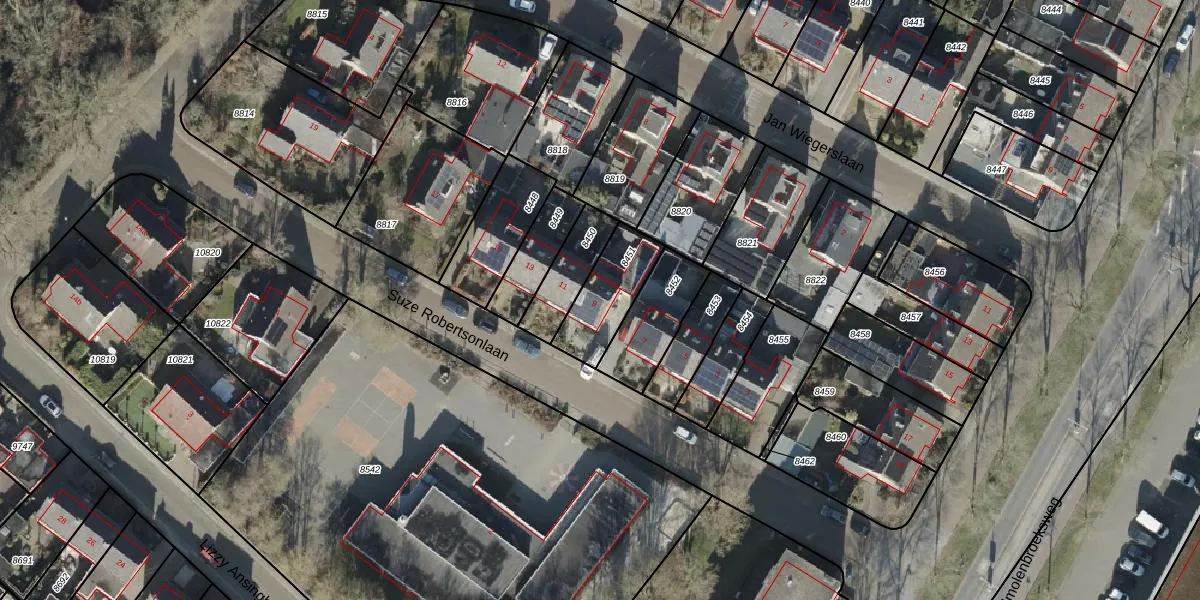 Suze Robertsonlaan 9 is gelegen op kadastraal perceel AML01H8451. Deze kadastrale aanduiding is uniek en wordt gebruikt door het Kadaster om eigendomsrechten en andere zakelijke rechten vast te leggen. Het perceel maakt onderdeel uit van de kadastrale gemeente Ambt-Almelo.