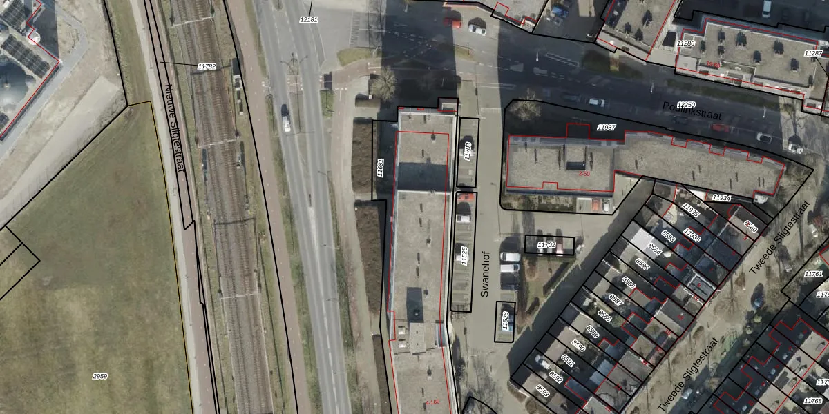 Het perceel waarop Swanehof 14 staat heeft een oppervlakte van 1833 m². Dit is een zeer groot perceel. De perceeloppervlakte wordt geregistreerd door het Kadaster. Gedetailleerde informatie over de maten van dit perceel kunt u vinden in het rapport Kadastrale kaart met maatvoering van Swanehof 14.