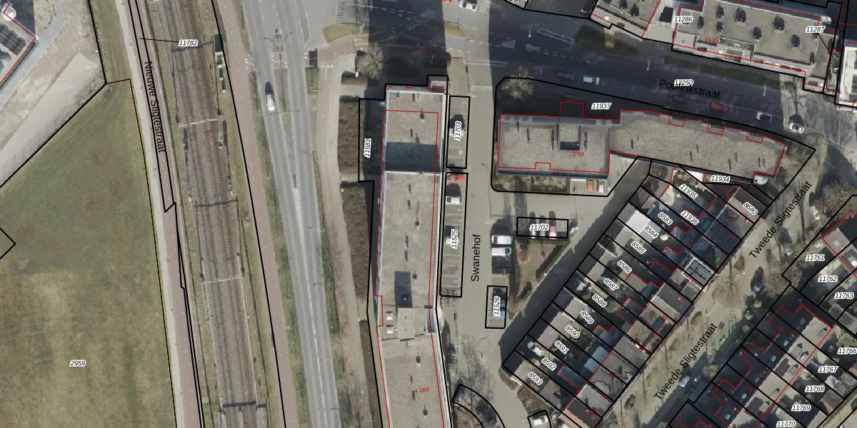 Het perceel waarop Swanehof 66 staat heeft een oppervlakte van 1833 m². Dit is een zeer groot perceel. De perceeloppervlakte wordt geregistreerd door het Kadaster. Gedetailleerde informatie over de maten van dit perceel kunt u vinden in het rapport Kadastrale kaart met maatvoering van Swanehof 66.