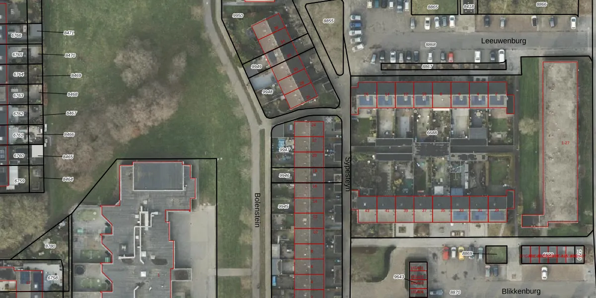 Het perceel waarop Sypesteyn 22 staat heeft een oppervlakte van 395 m². Dit is een groot perceel. De perceeloppervlakte wordt geregistreerd door het Kadaster. Gedetailleerde informatie over de maten van dit perceel kunt u vinden in het rapport Kadastrale kaart met maatvoering van Sypesteyn 22.