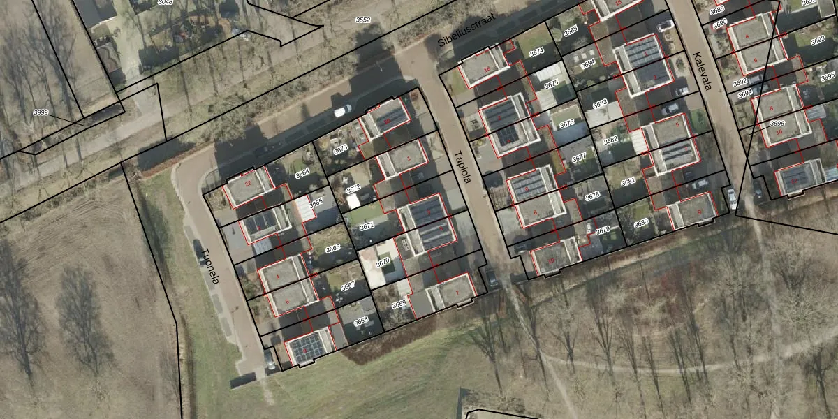 Het perceel waarop Tapiola 3 staat heeft een oppervlakte van 278 m². Dit is een middelgroot perceel. De perceeloppervlakte wordt geregistreerd door het Kadaster. Gedetailleerde informatie over de maten van dit perceel kunt u vinden in het rapport Kadastrale kaart met maatvoering van Tapiola 3.