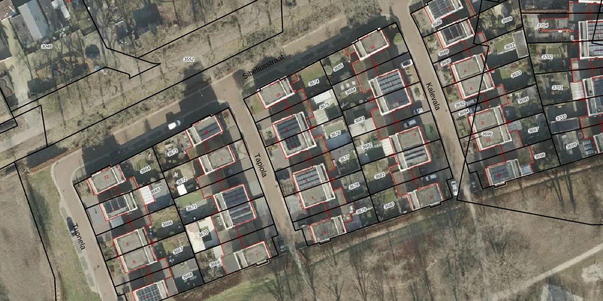 Het perceel waarop Tapiola 4 staat heeft een oppervlakte van 257 m². Dit is een middelgroot perceel. De perceeloppervlakte wordt geregistreerd door het Kadaster. Gedetailleerde informatie over de maten van dit perceel kunt u vinden in het rapport Kadastrale kaart met maatvoering van Tapiola 4.
