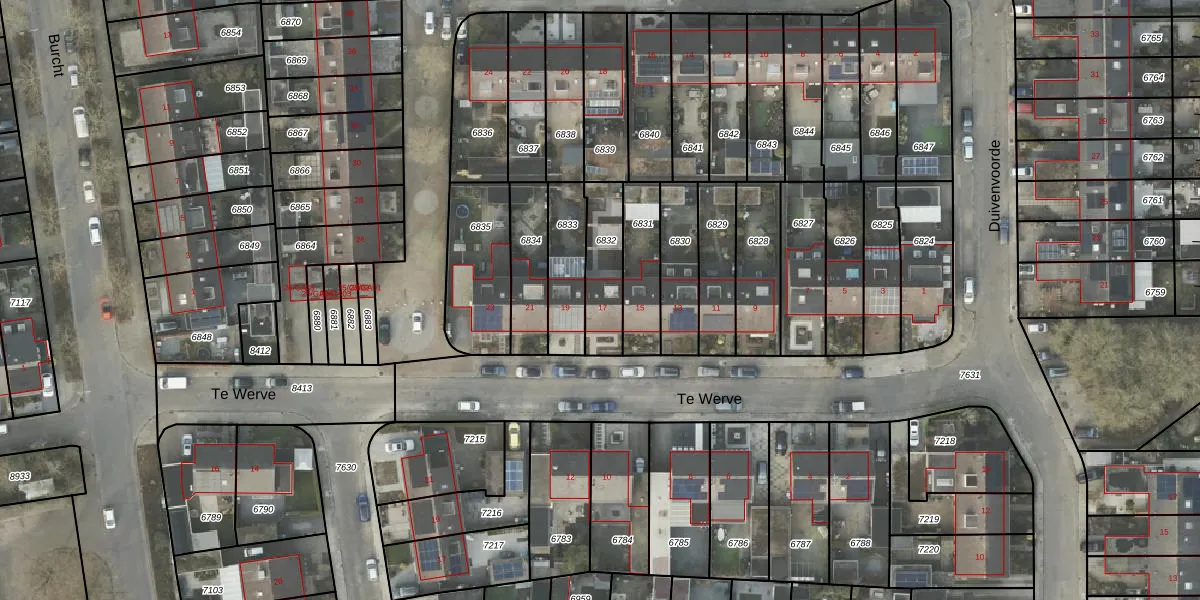 Het perceel waarop Te Werve 17 staat heeft een oppervlakte van 184 m². Dit is een middelgroot perceel. De perceeloppervlakte wordt geregistreerd door het Kadaster. Gedetailleerde informatie over de maten van dit perceel kunt u vinden in het rapport Kadastrale kaart met maatvoering van Te Werve 17.