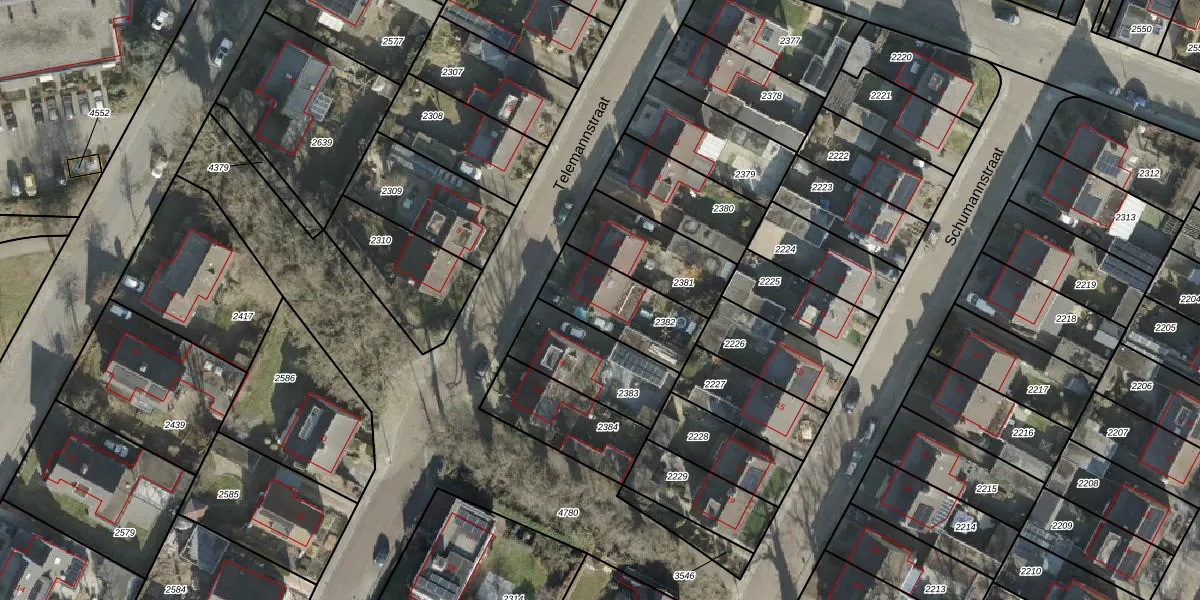 Telemannstraat 12 is gelegen op kadastraal perceel AML01I2382. Deze kadastrale aanduiding is uniek en wordt gebruikt door het Kadaster om eigendomsrechten en andere zakelijke rechten vast te leggen. Het perceel maakt onderdeel uit van de kadastrale gemeente Ambt-Almelo.
