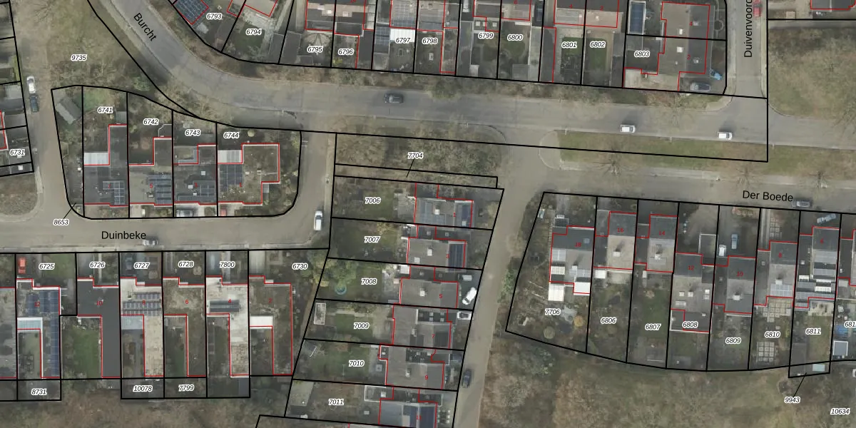 Gebruik de zoekbalk of klik op een perceel voor informatie over de adressen binnen dit perceel.