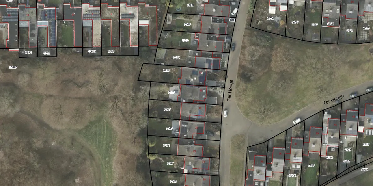 Ter Hooge 15 is gelegen op kadastraal perceel AML01B7013. Deze kadastrale aanduiding is uniek en wordt gebruikt door het Kadaster om eigendomsrechten en andere zakelijke rechten vast te leggen. Het perceel maakt onderdeel uit van de kadastrale gemeente Ambt-Almelo.