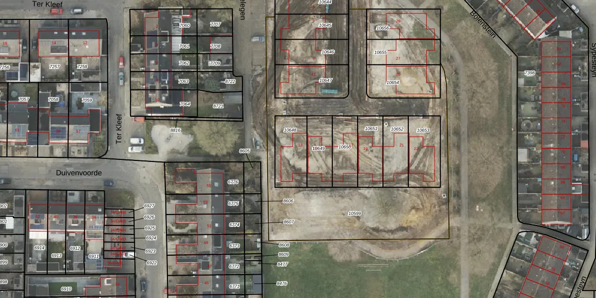 Het perceel waarop Ter Kleef 13 staat heeft een oppervlakte van 258 m². Dit is een middelgroot perceel. De perceeloppervlakte wordt geregistreerd door het Kadaster. Gedetailleerde informatie over de maten van dit perceel kunt u vinden in het rapport Kadastrale kaart met maatvoering van Ter Kleef 13.