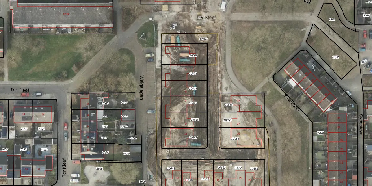 Het perceel waarop Ter Kleef 5 staat heeft een oppervlakte van 211 m². Dit is een middelgroot perceel. De perceeloppervlakte wordt geregistreerd door het Kadaster. Gedetailleerde informatie over de maten van dit perceel kunt u vinden in het rapport Kadastrale kaart met maatvoering van Ter Kleef 5.