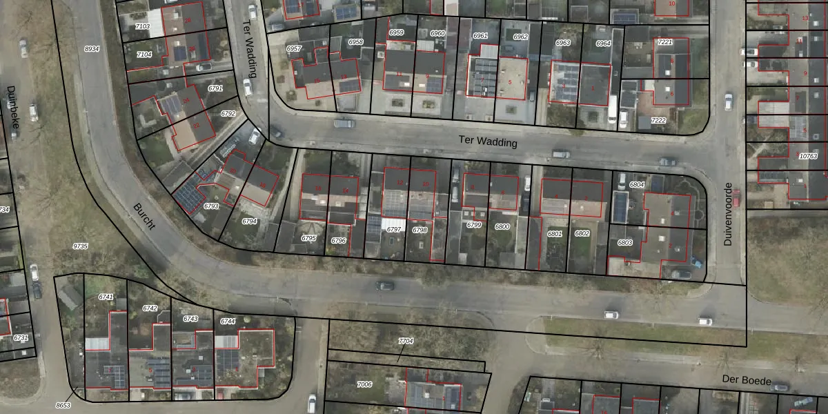 Het perceel waarop Ter Wadding 10 staat heeft een oppervlakte van 249 m². Dit is een middelgroot perceel. De perceeloppervlakte wordt geregistreerd door het Kadaster. Gedetailleerde informatie over de maten van dit perceel kunt u vinden in het rapport Kadastrale kaart met maatvoering van Ter Wadding 10.