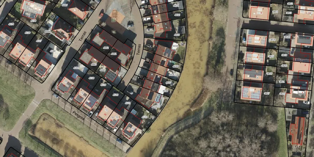 Het perceel waarop Terras 24 staat heeft een oppervlakte van 154 m². Dit is een middelgroot perceel. De perceeloppervlakte wordt geregistreerd door het Kadaster. Gedetailleerde informatie over de maten van dit perceel kunt u vinden in het rapport Kadastrale kaart met maatvoering van Terras 24.