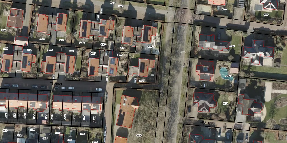 Gebruik de zoekbalk of klik op een perceel voor informatie over de adressen binnen dit perceel.
