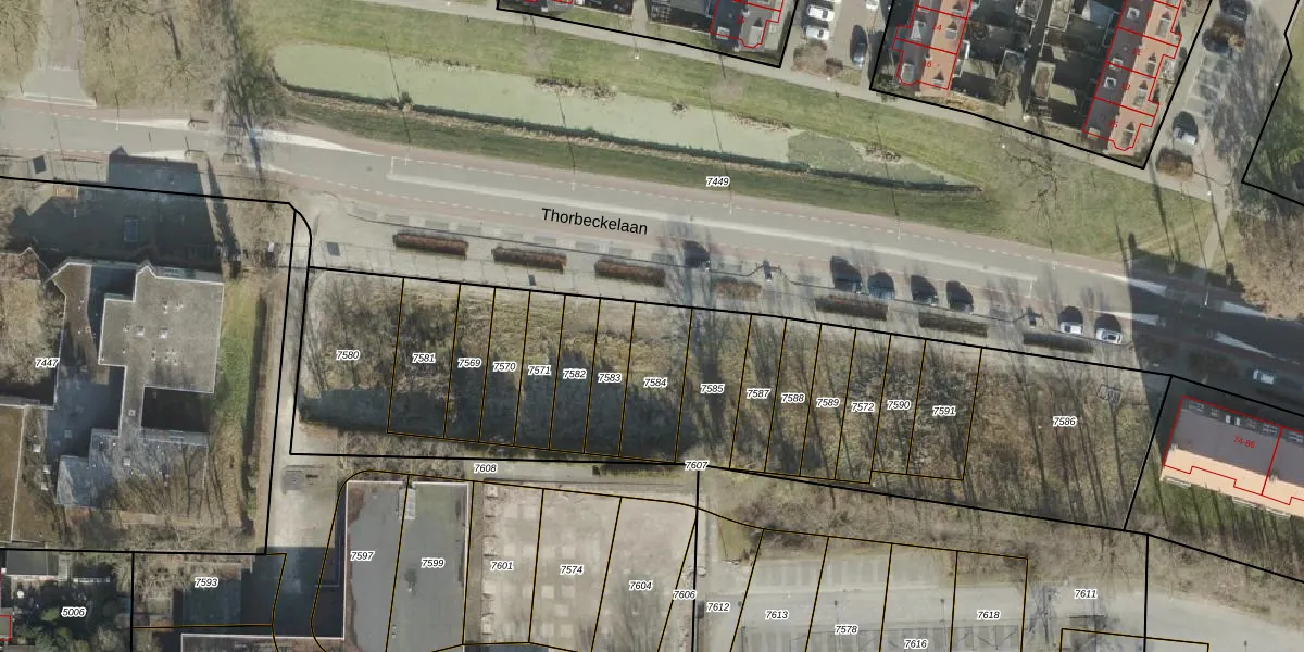 Thorbeckelaan 102 is gelegen op kadastraal perceel AML01A7584. Deze kadastrale aanduiding is uniek en wordt gebruikt door het Kadaster om eigendomsrechten en andere zakelijke rechten vast te leggen. Het perceel maakt onderdeel uit van de kadastrale gemeente Ambt-Almelo.