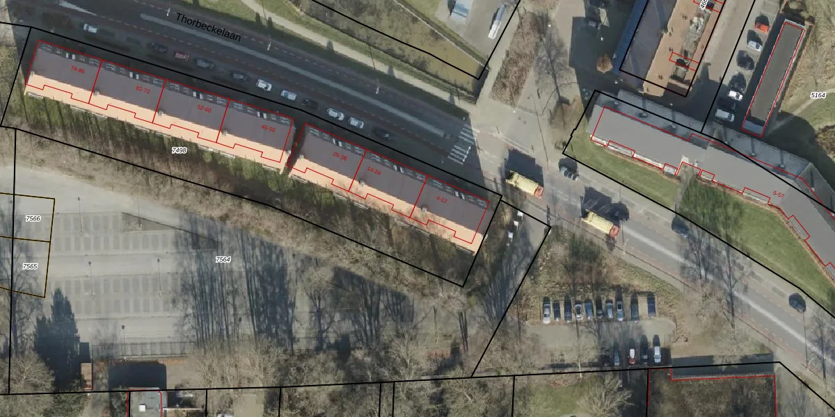 Het perceel waarop Thorbeckelaan 12 staat heeft een oppervlakte van 2875 m². Dit is een zeer groot perceel. De perceeloppervlakte wordt geregistreerd door het Kadaster. Gedetailleerde informatie over de maten van dit perceel kunt u vinden in het rapport Kadastrale kaart met maatvoering van Thorbeckelaan 12.