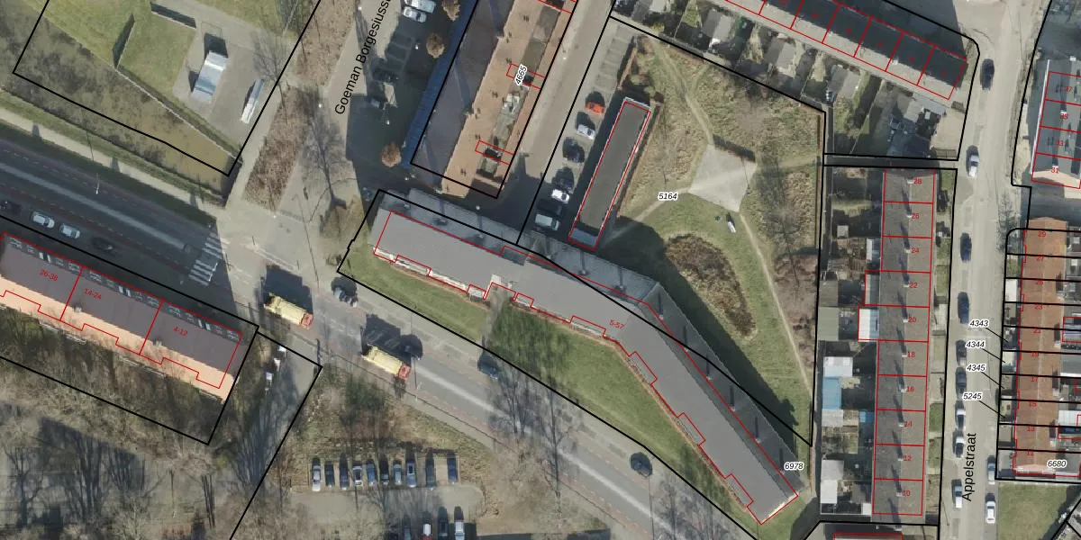 Het perceel waarop het adres ligt is AML01-A-6978. De afkorting 'AML01' staat voor kadastrale gemeente Ambt-Almelo. De oppervlakte van het perceel is 3505 m². Dat is groter dan gemiddeld in Ambt-Almelo, waar de gemiddelde perceeloppervlakte op 2067,1 m² ligt. Het kleinste perceel in de kadastrale gemeente is 0 m² groot. De grootste perceeloppervlakte is 67,4 ha. Er zijn 36 adressen aanwezig op het perceel. De huidige grenzen van het perceel zijn digitaal in de Basisregistratie Kadaster (BRK) geregistreerd op 07-12-2009.