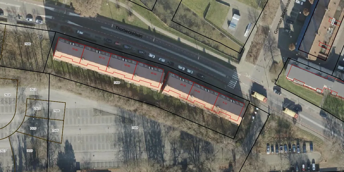 Thorbeckelaan 36 is gelegen op kadastraal perceel AML01A7498. Deze kadastrale aanduiding is uniek en wordt gebruikt door het Kadaster om eigendomsrechten en andere zakelijke rechten vast te leggen. Het perceel maakt onderdeel uit van de kadastrale gemeente Ambt-Almelo.