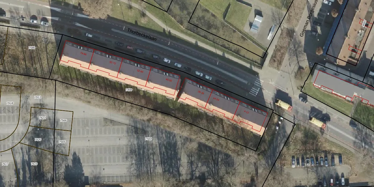 Thorbeckelaan 38 is gelegen op kadastraal perceel AML01A7498. Deze kadastrale aanduiding is uniek en wordt gebruikt door het Kadaster om eigendomsrechten en andere zakelijke rechten vast te leggen. Het perceel maakt onderdeel uit van de kadastrale gemeente Ambt-Almelo.