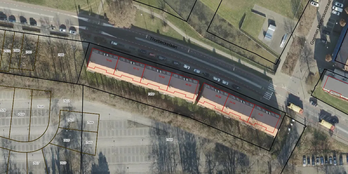 Thorbeckelaan 48 is gelegen op kadastraal perceel AML01A7498. Deze kadastrale aanduiding is uniek en wordt gebruikt door het Kadaster om eigendomsrechten en andere zakelijke rechten vast te leggen. Het perceel maakt onderdeel uit van de kadastrale gemeente Ambt-Almelo.
