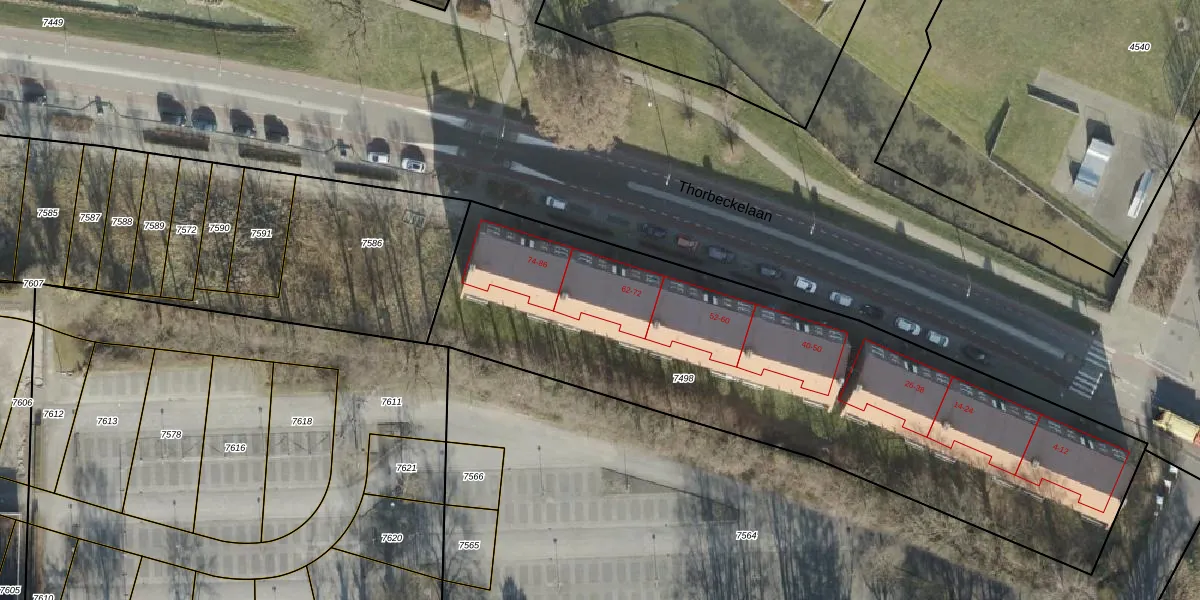 Het perceel waarop Thorbeckelaan 68 staat heeft een oppervlakte van 2875 m². Dit is een zeer groot perceel. De perceeloppervlakte wordt geregistreerd door het Kadaster. Gedetailleerde informatie over de maten van dit perceel kunt u vinden in het rapport Kadastrale kaart met maatvoering van Thorbeckelaan 68.