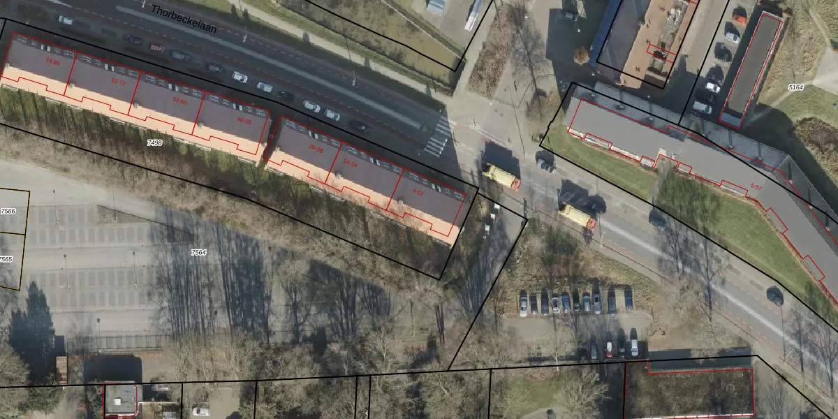 Het perceel waarop Thorbeckelaan 8 staat heeft een oppervlakte van 2875 m². Dit is een zeer groot perceel. De perceeloppervlakte wordt geregistreerd door het Kadaster. Gedetailleerde informatie over de maten van dit perceel kunt u vinden in het rapport Kadastrale kaart met maatvoering van Thorbeckelaan 8.