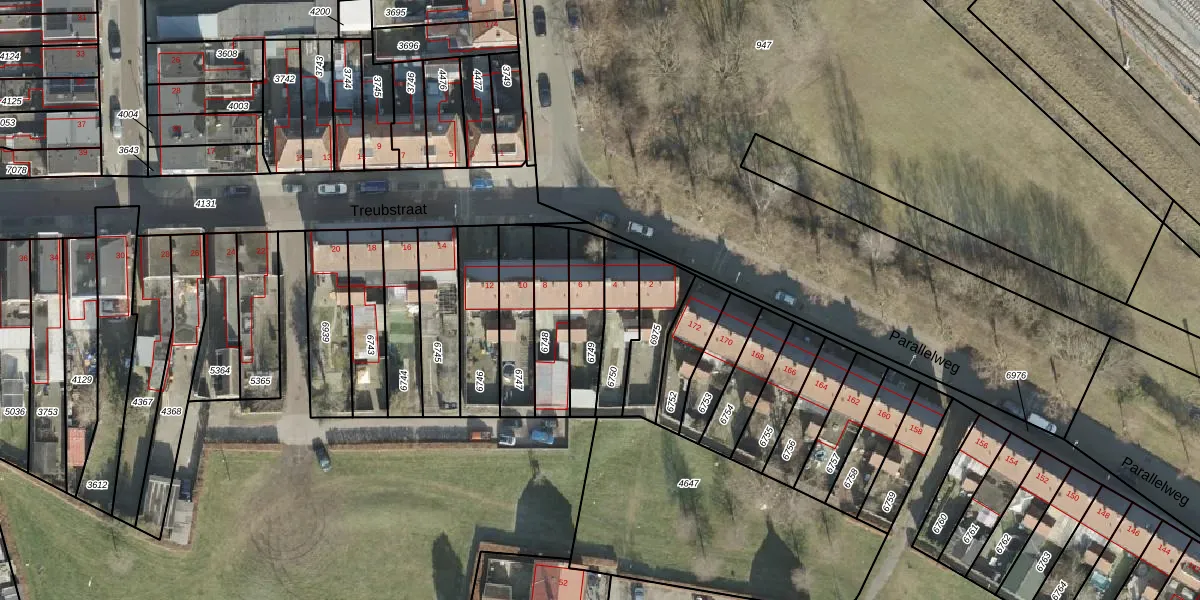 Het perceel waarop Treubstraat 6 staat heeft een oppervlakte van 169 m². Dit is een middelgroot perceel. De perceeloppervlakte wordt geregistreerd door het Kadaster. Gedetailleerde informatie over de maten van dit perceel kunt u vinden in het rapport Kadastrale kaart met maatvoering van Treubstraat 6.