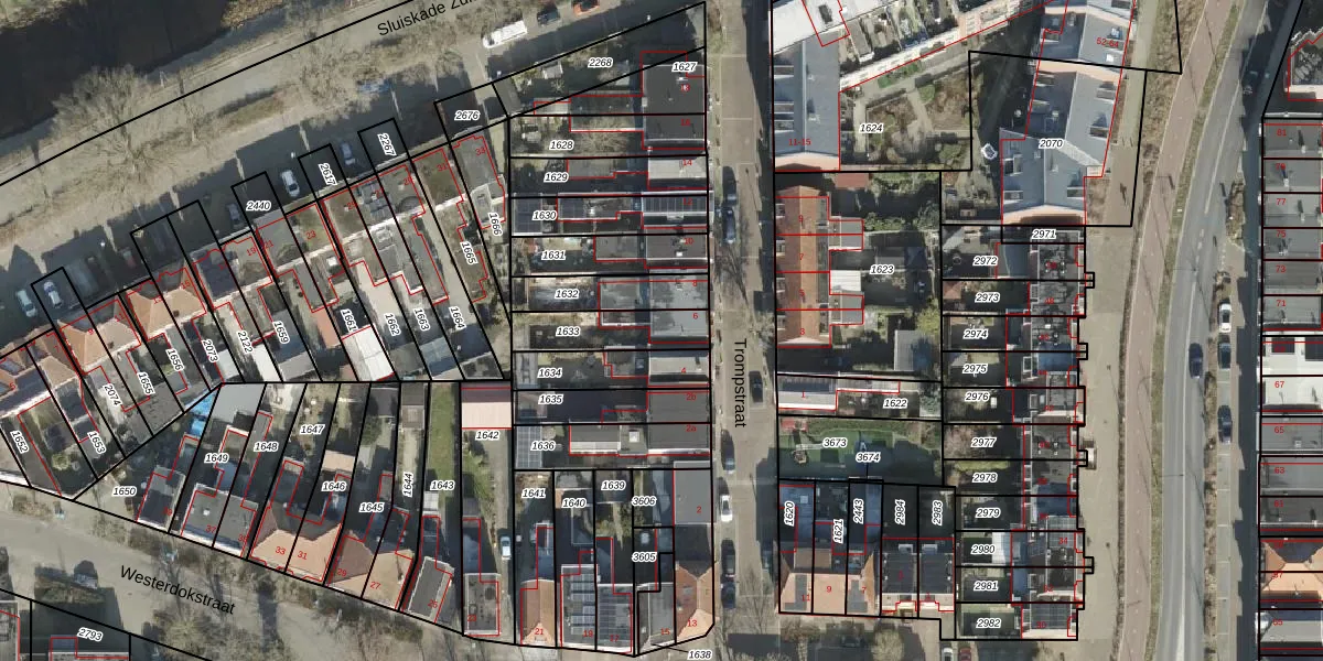 Het perceel waarop Trompstraat 6 staat heeft een oppervlakte van 173 m². Dit is een middelgroot perceel. De perceeloppervlakte wordt geregistreerd door het Kadaster. Gedetailleerde informatie over de maten van dit perceel kunt u vinden in het rapport Kadastrale kaart met maatvoering van Trompstraat 6.