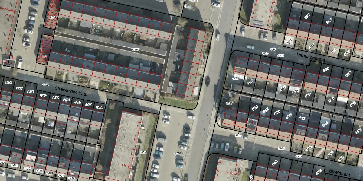 Het perceel waarop het adres ligt is AML01-I-2295. De afkorting 'AML01' staat voor kadastrale gemeente Ambt-Almelo. De gemiddelde perceeloppervlakte in de kadastrale gemeente Ambt-Almelo is 2069,47 m². Dit perceel is met zijn 4180 m² dus groter dan gemiddeld. Het kleinste perceel in de kadastrale gemeente is 0 m² groot. De grootste perceeloppervlakte is 67,4 ha. Op het perceel zijn 26 adressen aanwezig. In de Basisregistratie Kadaster (BRK) werden de grenzen van het perceel geregistreerd op 27-01-2003.