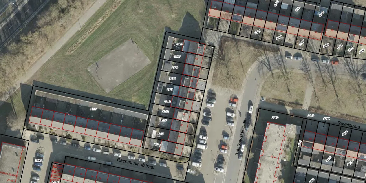 Het perceel waarop Tsjaikowskystraat 36 staat heeft een oppervlakte van 172 m². Dit is een middelgroot perceel. De perceeloppervlakte wordt geregistreerd door het Kadaster. Gedetailleerde informatie over de maten van dit perceel kunt u vinden in het rapport Kadastrale kaart met maatvoering van Tsjaikowskystraat 36.