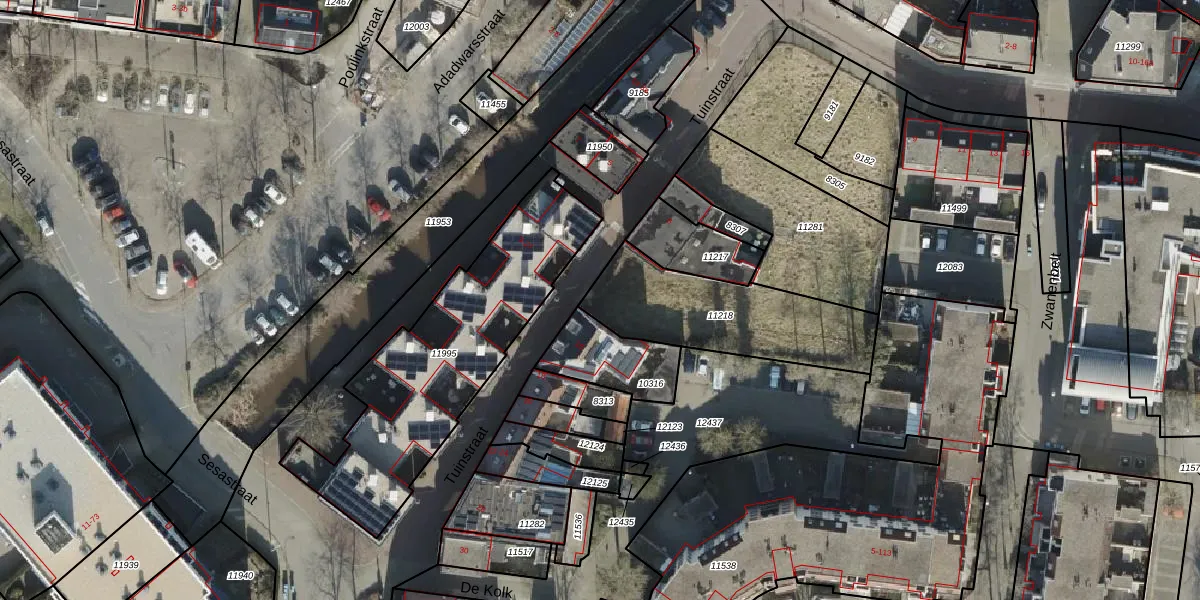 Het perceel waarop Tuinstraat 14 staat heeft een oppervlakte van 565 m². Dit is een groot perceel. De perceeloppervlakte wordt geregistreerd door het Kadaster. Gedetailleerde informatie over de maten van dit perceel kunt u vinden in het rapport Kadastrale kaart met maatvoering van Tuinstraat 14.
