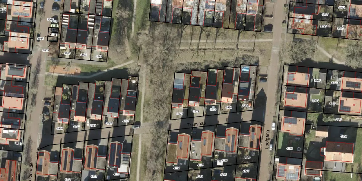 Het perceel waarop Tuinvaas 12 staat heeft een oppervlakte van 233 m². Dit is een middelgroot perceel. De perceeloppervlakte wordt geregistreerd door het Kadaster. Gedetailleerde informatie over de maten van dit perceel kunt u vinden in het rapport Kadastrale kaart met maatvoering van Tuinvaas 12.
