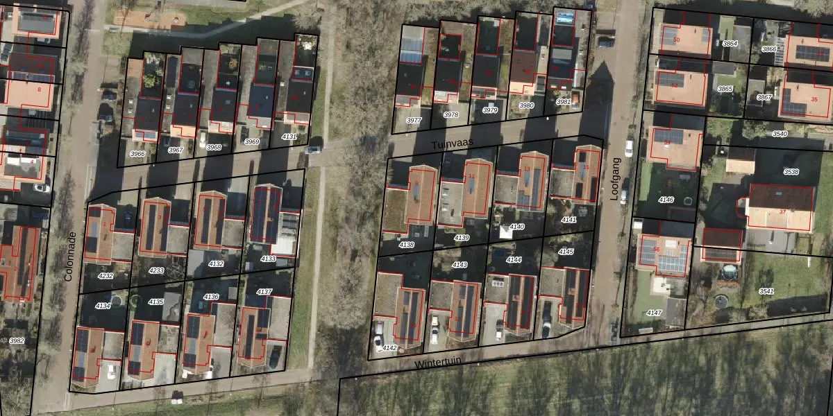 Gebruik de zoekbalk of klik op een perceel voor informatie over de adressen binnen dit perceel.