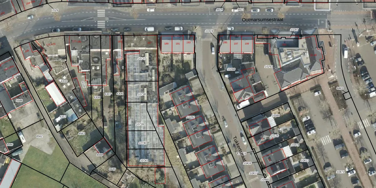 Het perceel waarop Tukkertstraat 1 staat heeft een oppervlakte van 2010 m². Dit is een zeer groot perceel. De perceeloppervlakte wordt geregistreerd door het Kadaster. Gedetailleerde informatie over de maten van dit perceel kunt u vinden in het rapport Kadastrale kaart met maatvoering van Tukkertstraat 1.