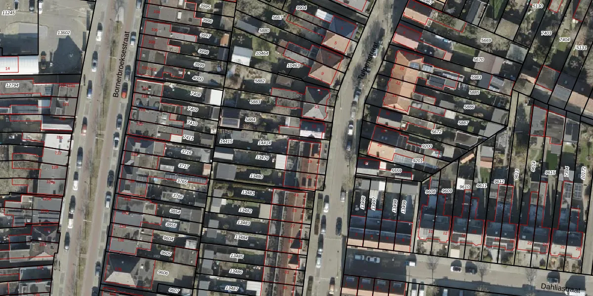 Het perceel waarop Tulpenstraat 17 staat heeft een oppervlakte van 249 m². Dit is een middelgroot perceel. De perceeloppervlakte wordt geregistreerd door het Kadaster. Gedetailleerde informatie over de maten van dit perceel kunt u vinden in het rapport Kadastrale kaart met maatvoering van Tulpenstraat 17.