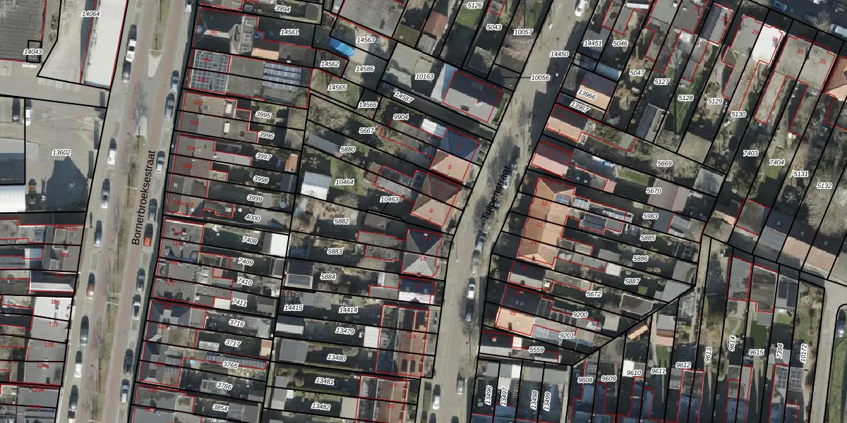 Gebruik de zoekbalk of klik op een perceel voor informatie over de adressen binnen dit perceel.