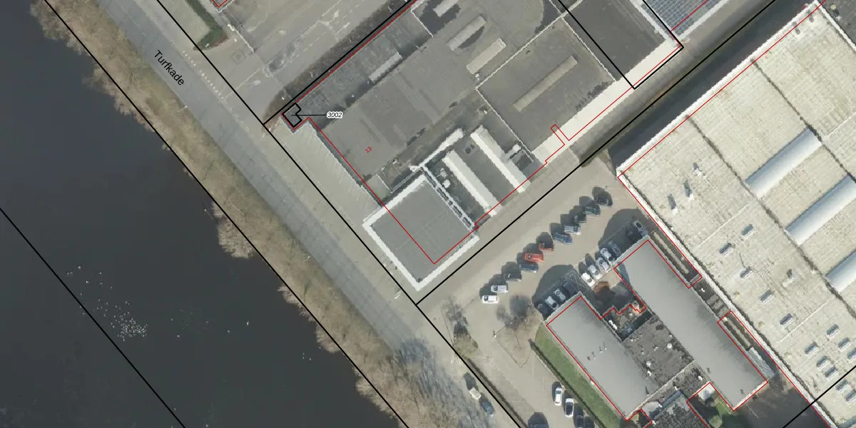 Turfkade 13 is gelegen op kadastraal perceel AML01K3003. Deze kadastrale aanduiding is uniek en wordt gebruikt door het Kadaster om eigendomsrechten en andere zakelijke rechten vast te leggen. Het perceel maakt onderdeel uit van de kadastrale gemeente Ambt-Almelo.