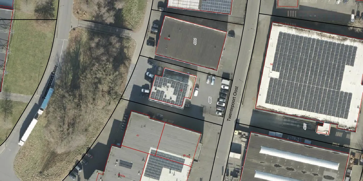 Twentepoort Oost 45 is gelegen op kadastraal perceel AML01N4885. Deze kadastrale aanduiding is uniek en wordt gebruikt door het Kadaster om eigendomsrechten en andere zakelijke rechten vast te leggen. Het perceel maakt onderdeel uit van de kadastrale gemeente Ambt-Almelo.