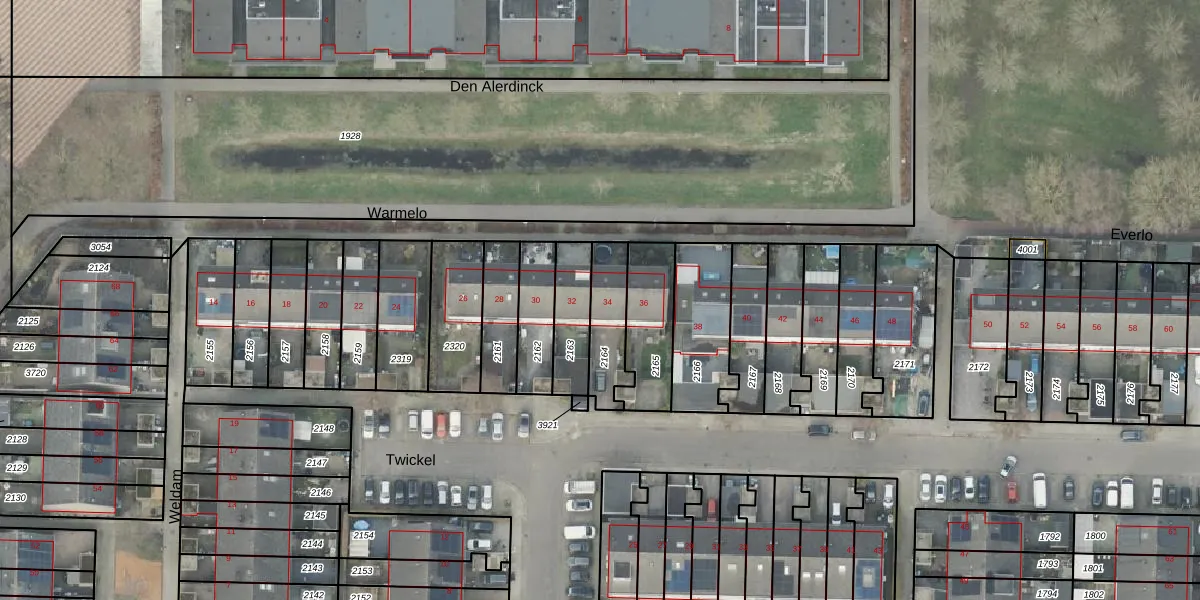 Gebruik de zoekbalk of klik op een perceel voor informatie over de adressen binnen dit perceel.